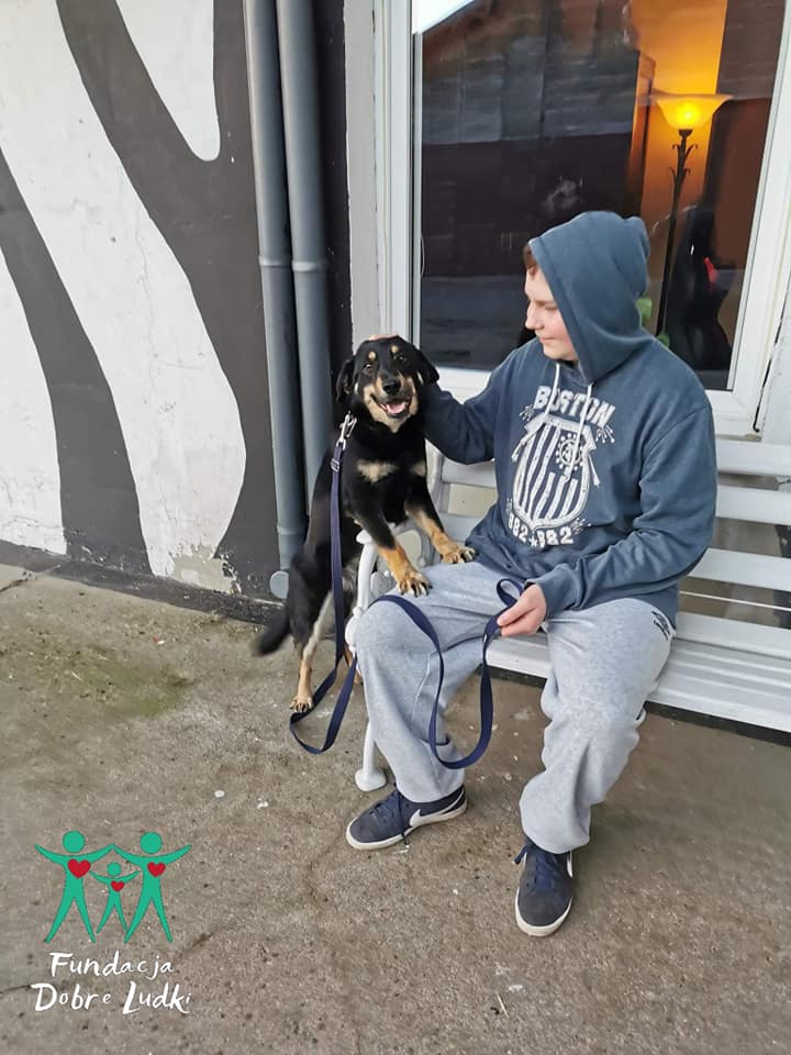 Jest to uroczy, średniej wielkości psiak. Bardzo chętnie wychodzi na spacery. Uwielbia biegać, jest bardzo energiczny. Będzie świetnym kompanem także do biegania lub jazdy na rowerze.