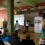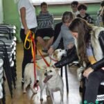 Spotkanie było doskonałą okazją do zwrócenia uwagi młodzieży na problem bezdomności wśród zwierząt. Wraz z nami na spotkanie wybrali się Fusia oraz Fliper (wesoła parka, która czeka na dom w schronisku w Węgrowie). Psiaki szybko odnalazły się w nowym miejscu i z radością przechadzały się między głaskającymi je uczniami.