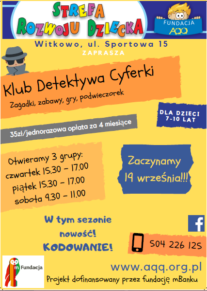 Relacje z Klubu Detektywa Cyferki możecie znaleźć na FB -Fundacja AQQ - zapraszamy :)
